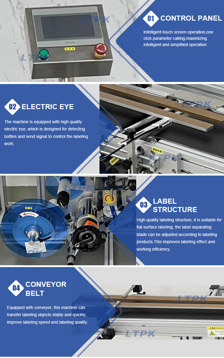 The automatic bottom flat labeling machine is suitable for flat labeling of various products. The advantage is that it can easily achieve flat labeling without flipping the front, and can be connected to other devices for use. Optional coding machine or inkjet printer can be used to print production date, batch number, barcode and other information on the label.