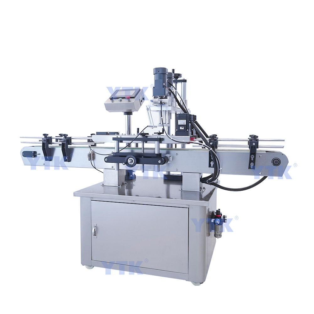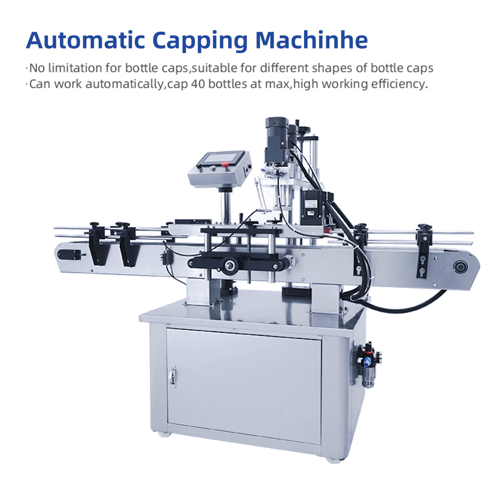 This machine is used for automatic capping of plastic bottles and glass bottles in cosmetics,food and beverage,pesticide and fertilizer,chemical industry,can be applied to a variety of bottle types,high production efficiency.